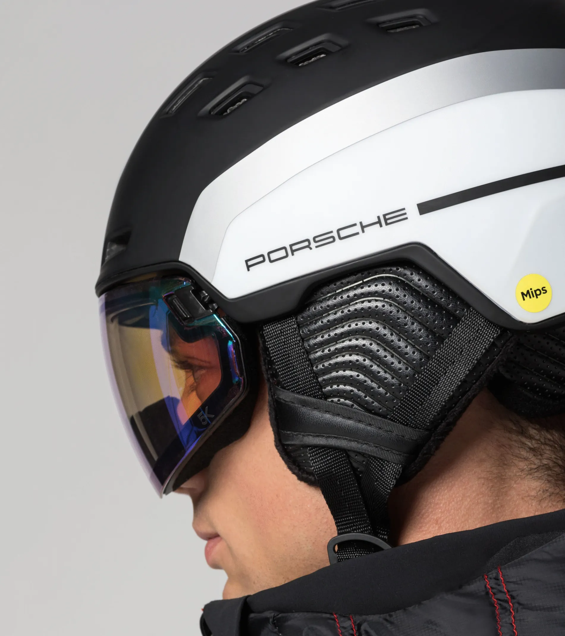 The First Ski Helmet From Porsche: The Porsche | Head Radar 5K Photo Mips With Sphere Fit Protection Technology And 5K Photo Lens. The Helmet In A Matte Dual-Color Design Combines The Advantages Of Ski Goggles With Those Of A Visor Helmet. The Integrated Photochromic Visor Offers An Almost Unrestricted Field Of Vision – When Not In Use, However, It Can Simply Be Pushed Up And Hooked In To Avoid Annoying Side Hinges. Maximum Comfort, Even For People Who Wear Glasses. The Double-Glass Visor Is Equipped With First-Class 5K Lens Technology And Automatically Adapts To The Light Conditions Between S1 And S3. The New, Patent-Pending Sphere Fit System, The Fidlock Buckle, Perforated Pu Leather Earmuffs And Offset, Lacquered Ventilation Openings Ensure A Perfect Fit And Maximum Comfort. The Integrated Mips Safety System Is Not Visible, But It Is A Clear Advantage In The Event Of A Twisting Fall. If A Fall Occurs, The Inner Cage Can Rotate Independently Of The Outer Helmet. Performance At Its Best – And In An Exclusive Design.