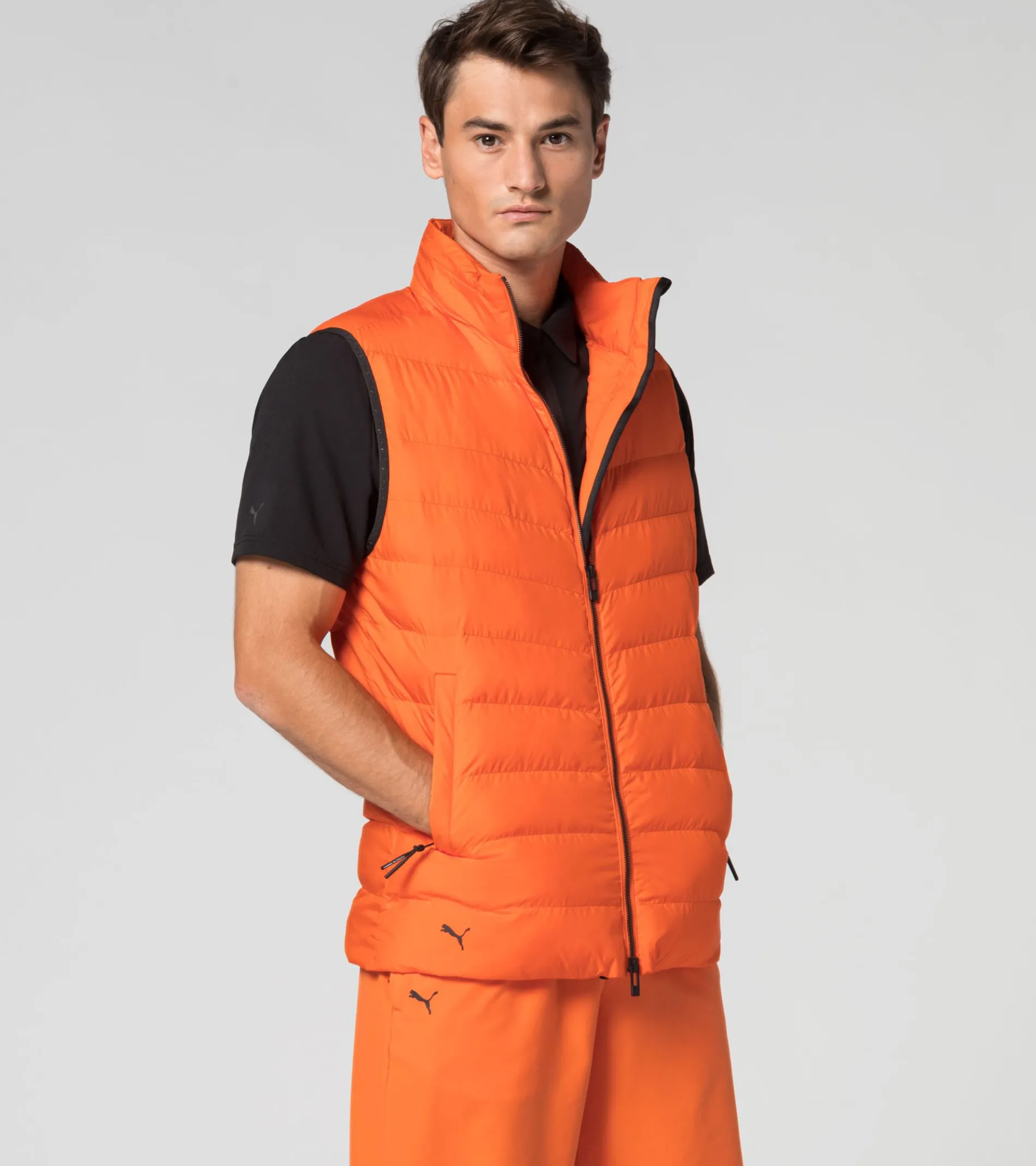 Dynamism To Go: Its Dynamic Quilting Makes The Porsche Design Light Packable Vest An Exclusive Eye-Catcher. The Main Feature Is That The Vest Can Be Easily Packed Away In The Inner Mesh Pocket And Carried Around. The Dwr Finish And Raincell®, Windcell® And Warmcell® Technologiesmean That The Vest Performs In All Weather. A Stand-Up Collar With A Pack-Away Hood And A Zipped Storm Flap Offer Extra Coverage. The Unifi Fibre Filling Keeps The Body Pleasantly Warm. The Armholes Are Fitted With Proprietary Porsche Design Elastic Cuffs. The Porsche Design Logo Adorns The Zip Of The Storm Flap.